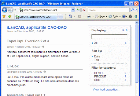 Mise en forme du flux sous IE 7.0 - Sur la droite vous pouvez filtrer et trier les nouvelles