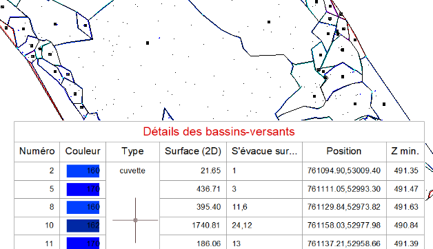Affichage des zones déblais-remblais ainsi que des frontières entre ces deux zones...