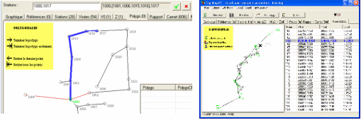 • La formation des cheminements se fait par sélection graphique. Généralement, 2 à 3 stations suffisent par polygonale. L'applicatif construit dès que vous lui demandez les dernières polygonales automatiquement.