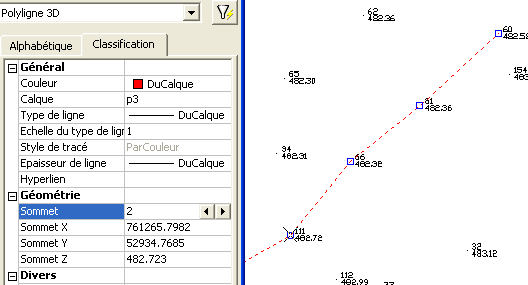 résultat est bien une polyligne 3D dont le Z des sommets est