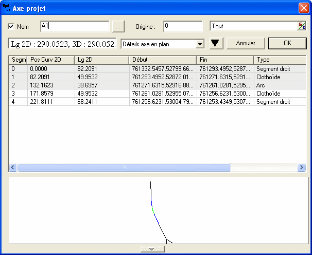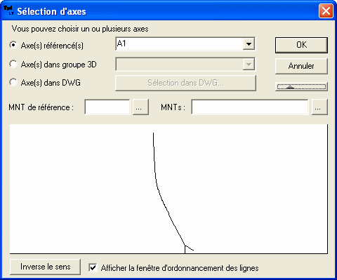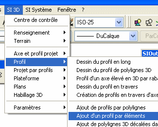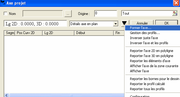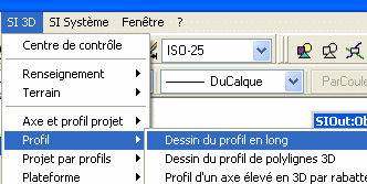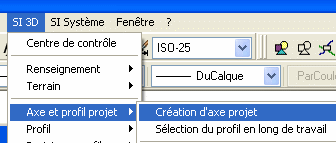 menu SI 3D>Axe et profil projet>Création d'axe projet