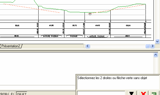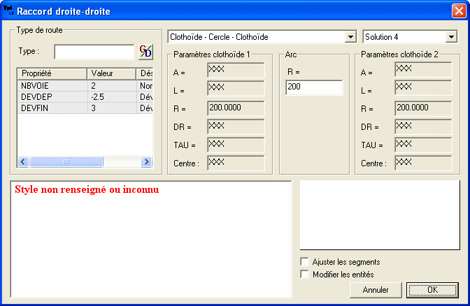 raccordement à l'aide de deux droites, ou d'une droite-un