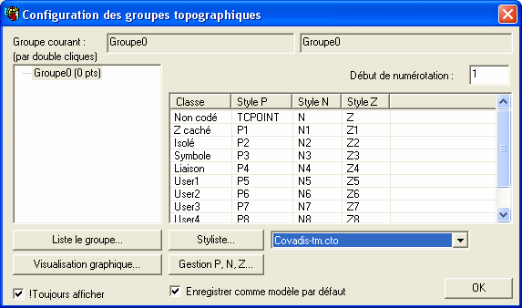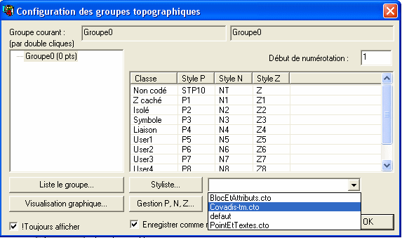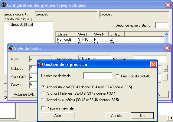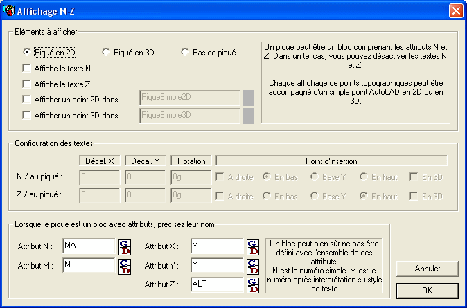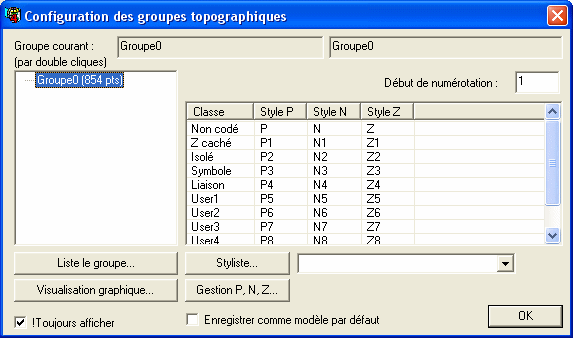fenêtre de configuration des points topograhiques ne sont pas