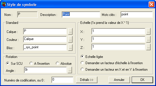 représenté par une entité point d'AutoCAD