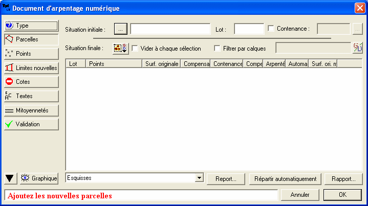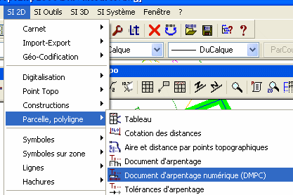• Dans le menu SI 2D>Parcelle,polyligne, cliquez sur «Document d'arpentage numérique»