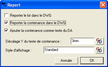 On reporte la contenance à la fois dans le DWG et dans notre DA. Faites « Ok »