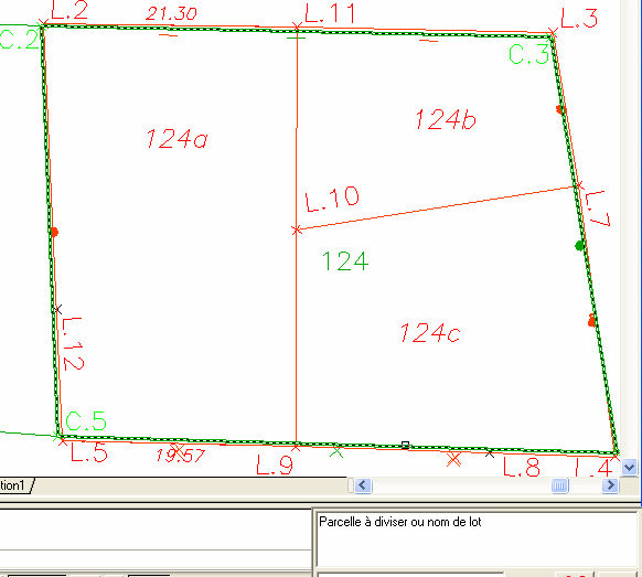 • Dans le cas présent, on divise la parcelle 124 en trois : 124a à 124c. Bien que non obligatoire on va travailler ici par parcelles.
