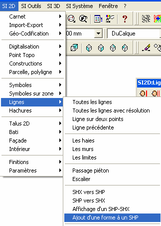 SHX. Pour cela, dans le menu SI 2D>Ligne, cliquez sur « SHP