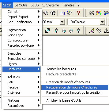 Dans le menu SI 2D/Hachures, cliquez sur