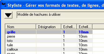 celles des hachures importées : consultez la documentation du