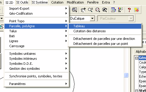 • Dans le menu SI 2D>Parcelle, cliquez sur « Tableau »