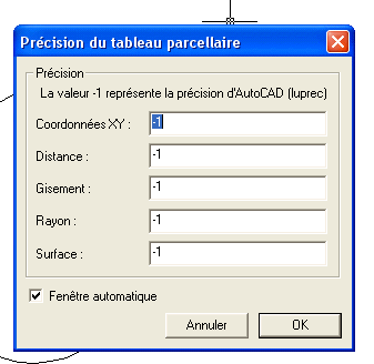 Dans cet assistant, on se propose de créer un tableau parcellaire
